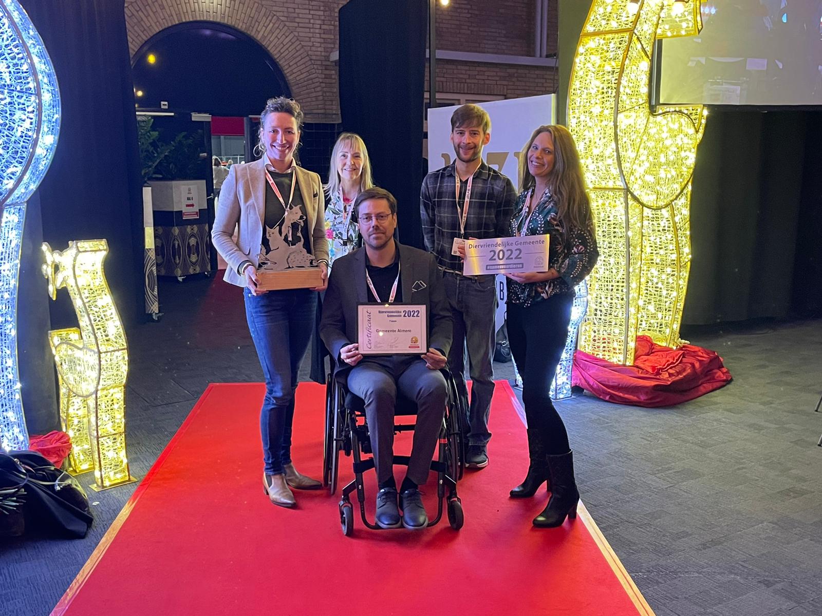 Uit het juryrapport: “Almere heeft grote sprongen gemaakt op het vlak van dierenwelzijn. Naast het feit dat deze gemeente in het kernteam zit van het platform DierVizier, hebben de Almeerse ambtenaren de afgelopen jaren hard gewerkt en inmiddels op bijna alle onderdelen een positieve score behaald. Naast een recente update van het dierenwelzijnsbeleid, kun je op de website van de gemeente Almere veel relevante informatie vinden op dierengebied. Omdat voor het eerst binnen het college een wethouder van de Partij voor de Dieren is aangetreden, is er meer capaciteit vrijgemaakt voor dierenwelzijn. In het coalitieakkoord zijn maar liefst 12 diergerelateerde doelstellingen opgenomen, van natuureducatie op basisscholen tot dier- en milieuvriendelijke contracten in het bedrijfsrestaurant. De gemeente neemt zelf de regierol richting dierenhulporganisaties en maken met hen kostendekkende meerjarige afspraken om continuïteit te waarborgen. Ook stimuleert Almere andere gemeenten hun verantwoordelijkheid te nemen voor bijvoorbeeld wilde dieren in nood en heeft zij de portemonnee getrokken voor onvoorziene omstandigheden, zoals vogelgriep.”